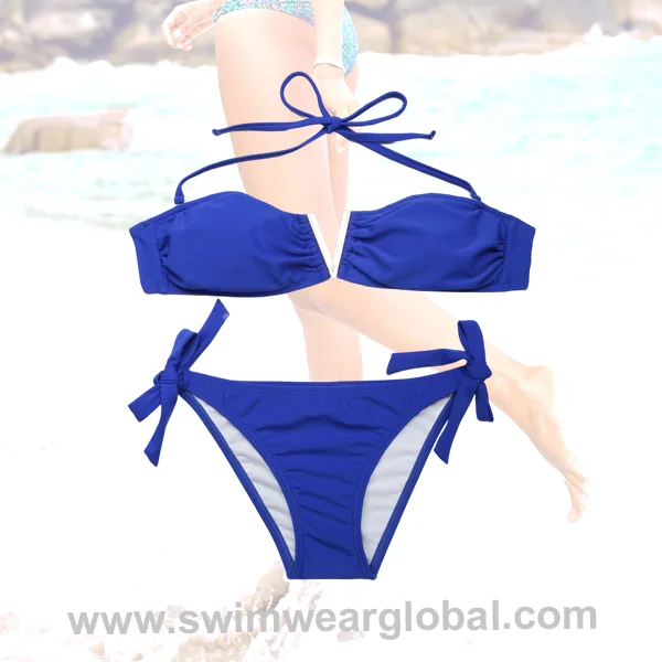 Royal Blue Deep V Bandeau Bikini Set – Strapless Swimwear for Women
